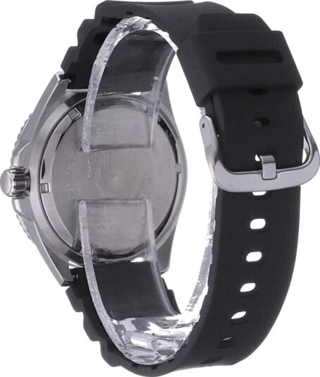 Inspired by the sea, this watch black resin band and stainless steel case give it a classic look.Simple 3-hand analog with date display for an easy-read.The watchs black resin band and stainless steel case give it a classic appearance while its anti-reverse bezel adds a diver inspired look. Simple 3-hand analog with date display for an easy-read.