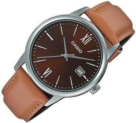 Casio MTP-V002L-5B3 Men’s Dress Brown Leather Band Brown Dial Date Watch