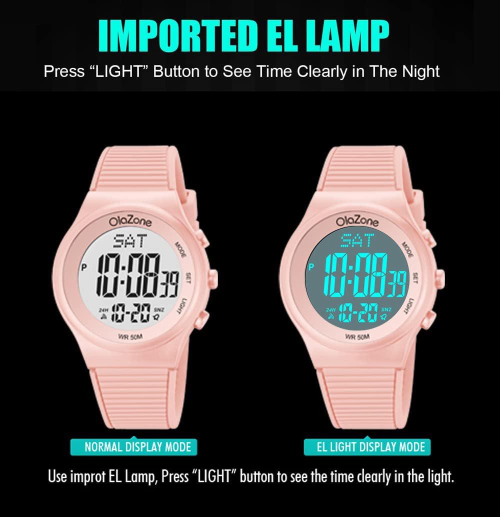 Girls Digital Watch Teens Sports 50M Waterproof Military Simple Silicone Strap Teenage Pink
