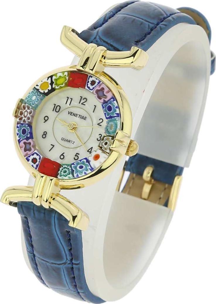 GlassOfVenice Murano Millefiori Watch With Leather Band – Blue Multicolor