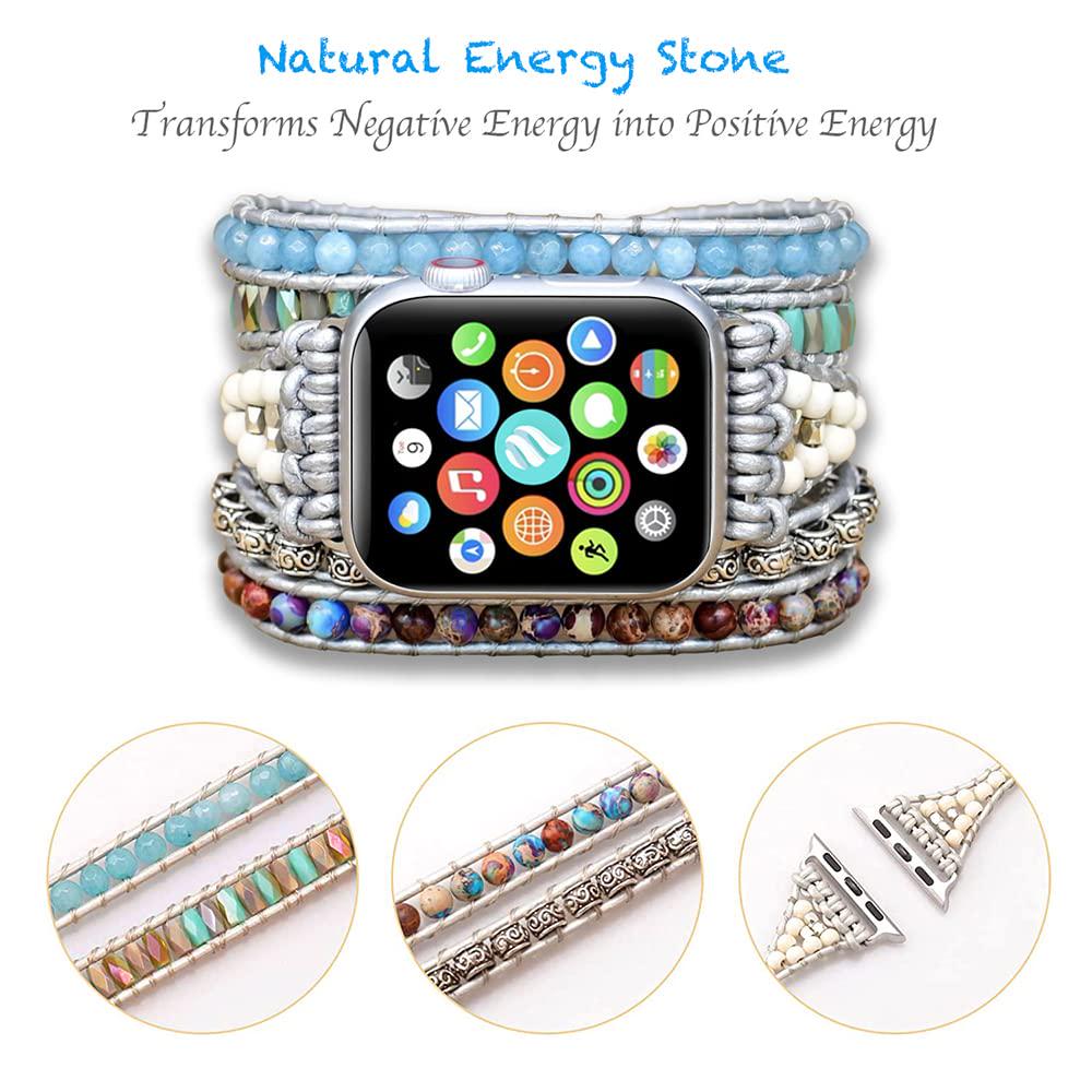 - Eye-catching Bohemia Watch Bands This watch band contains the structure design of boho wrap style, which combines healing chakra beads and color collocation, showing shiny & brightness. This compatible with apple watch band boho will be a great fashion statement and turns your watch from simple to an actual piece of jewelry!