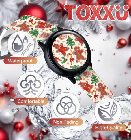 Holidays Watch Band 20mm Compatible With Samsung Galaxy 6/5/ 5 Pro/ 4/3/ 6 Classic/ 4 Classic/Active 2/ For Women Men, Stylish Cute Pattern Xmas Printed Replacement Strap