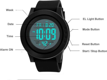 – LED digital military watch designed for men.