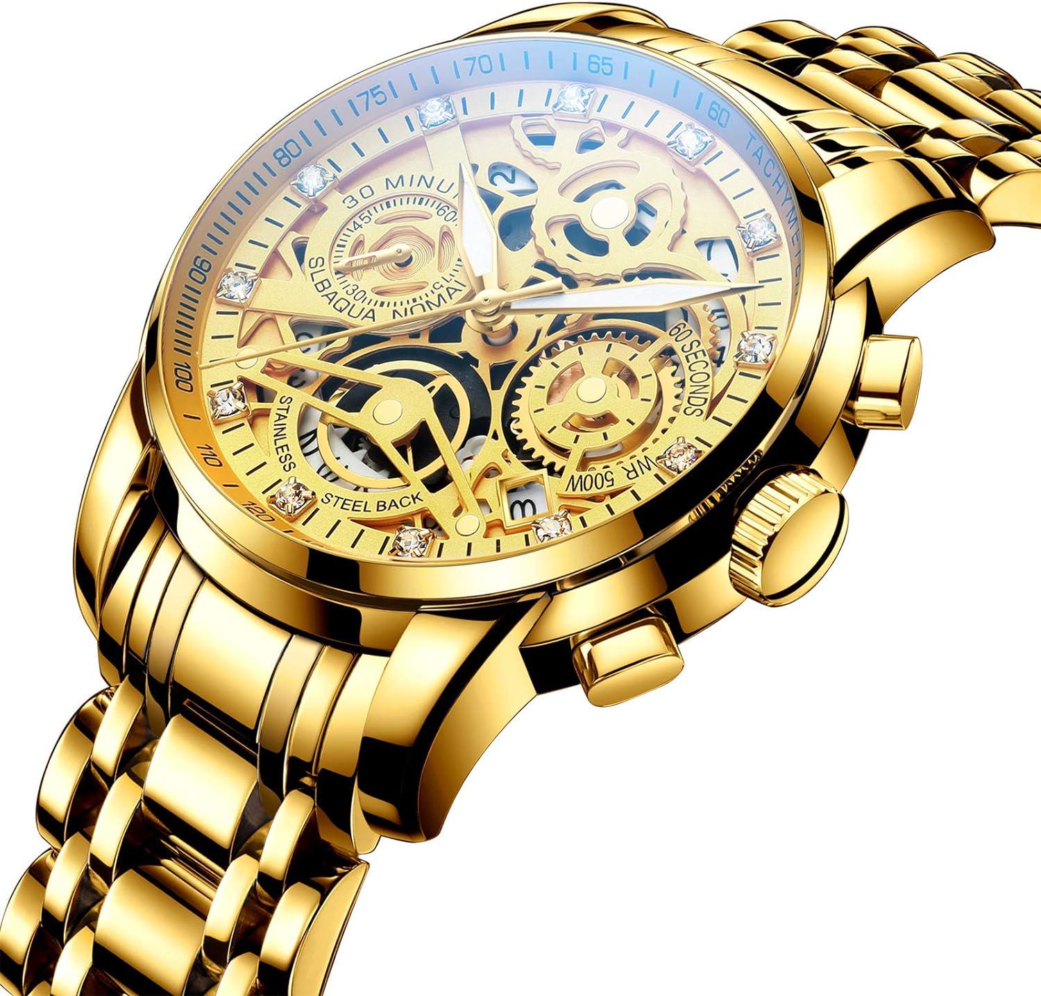 NEKTOM Mens Watches With Mechanical Appearance Stainless Steel And Metal Casual Waterproof Chronograph Quartz Sports For