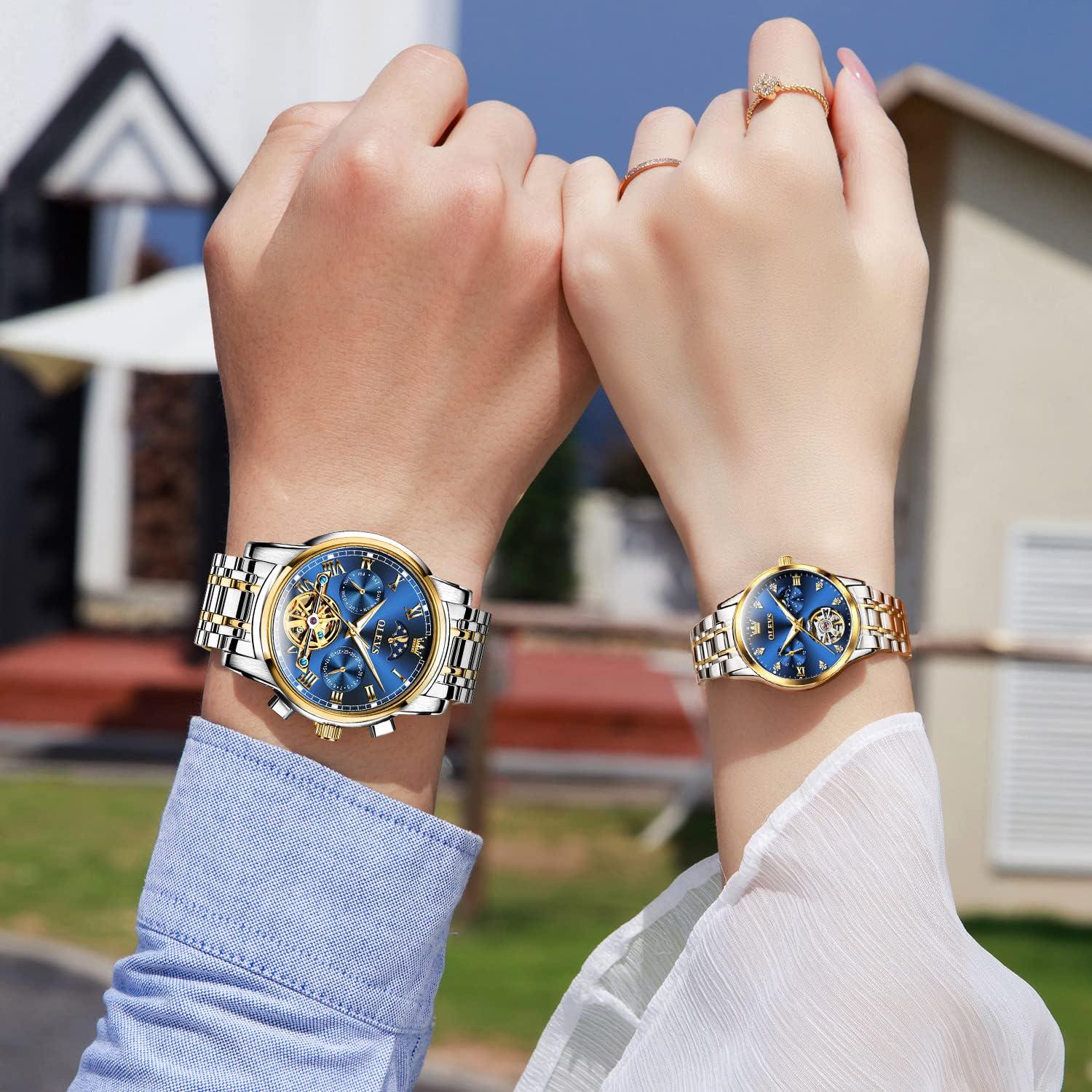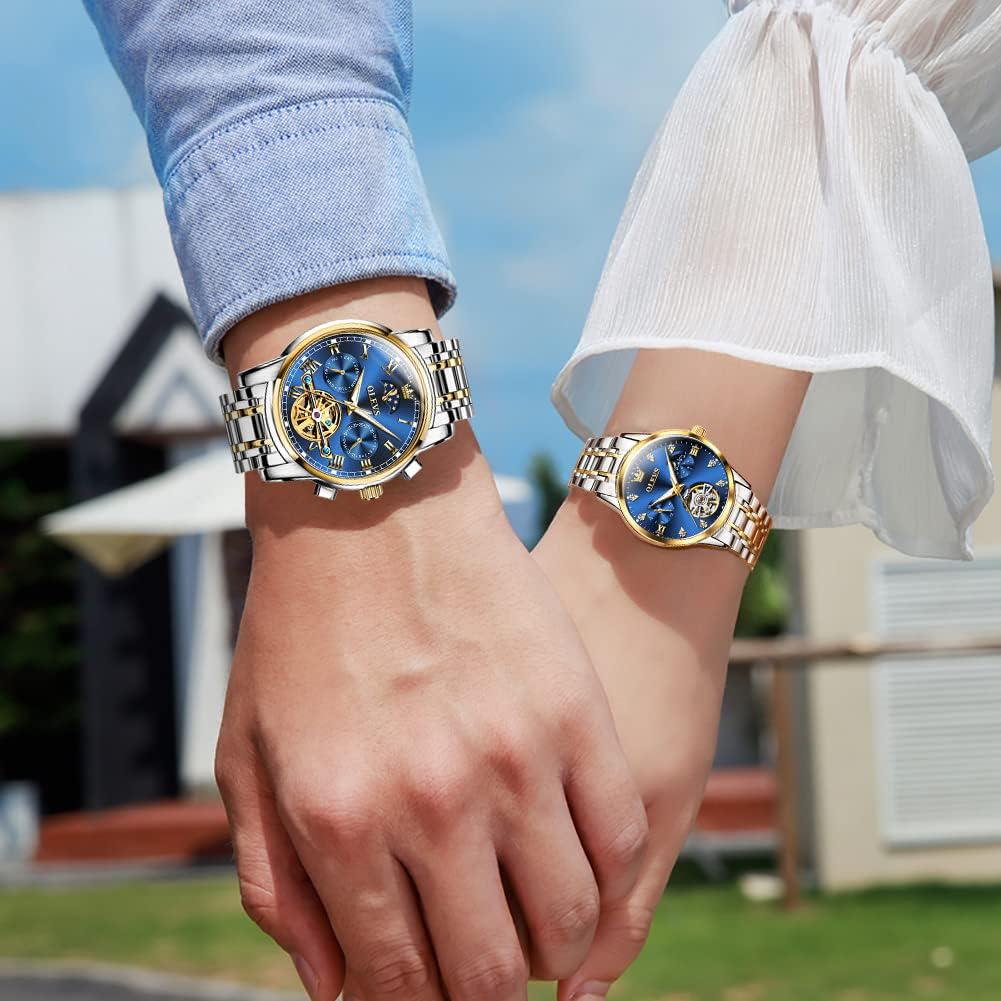 OLEVS Couple Pair Watches Set Automatic Mechanical Self Winding Dress Matching For His And Hers Valentines Day Gifts