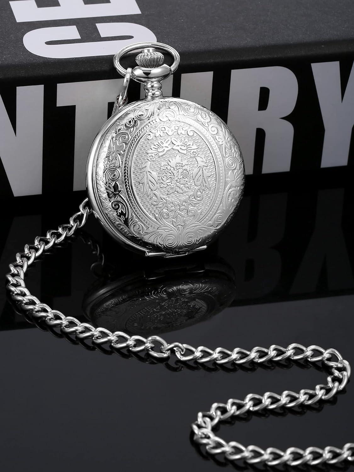 Pangda Vintage Pocket Watch Steel Men With Chain For Fathers Day Xmas Present Daily Use