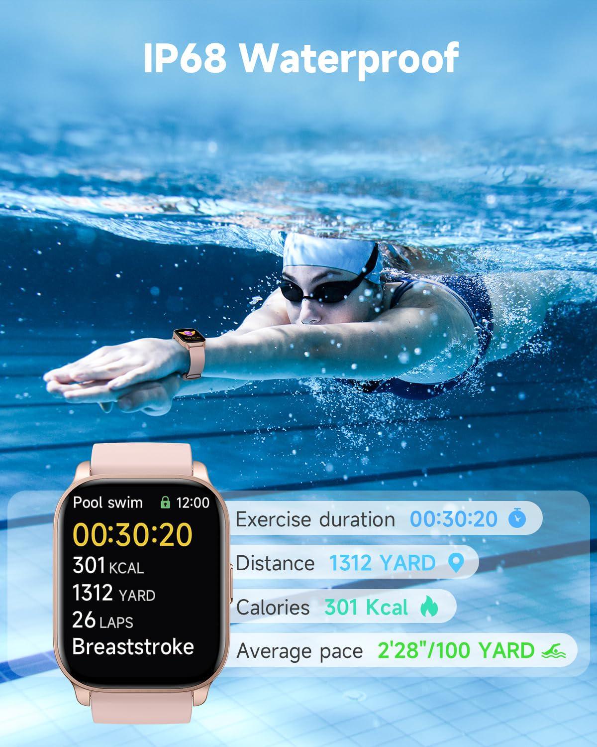 - Health & Fitness Tracking: Achieve your wellness goals with TOOBUR’s fitness watch for women. Monitor real-time heart rate, and stress levels, with instant alerts for any irregularities. Empower your family planning with menstrual cycle tracking and ovulation prediction by this smartwatch. Choose from over 100 sports modes to track steps, calories, distance, and speed. With IP68 waterproofing, our smartwatch is perfect for swimming and all activities.