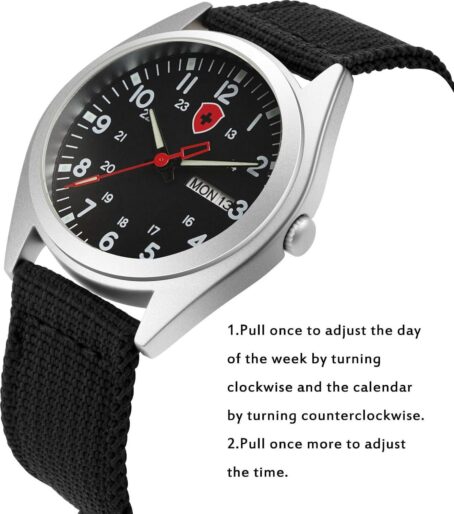 Unisex Military Watches Sports Analog Men With Textile Nylon Strap Or Breathable Silicone Strap,Easy To Read Luminous Dial,Date Week Display.Waterproof Casual Wristwatch.