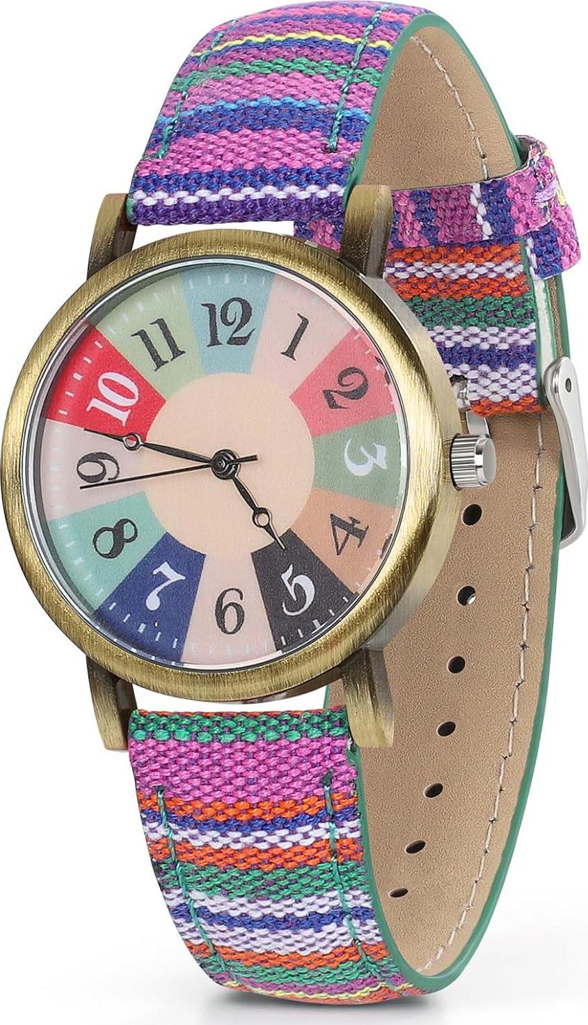 Watches For Women, Multicolor Rainbow Pattern Ladies’ PU Leather Strap,Upgraded Bohemian Womens Watches,Womens Gift