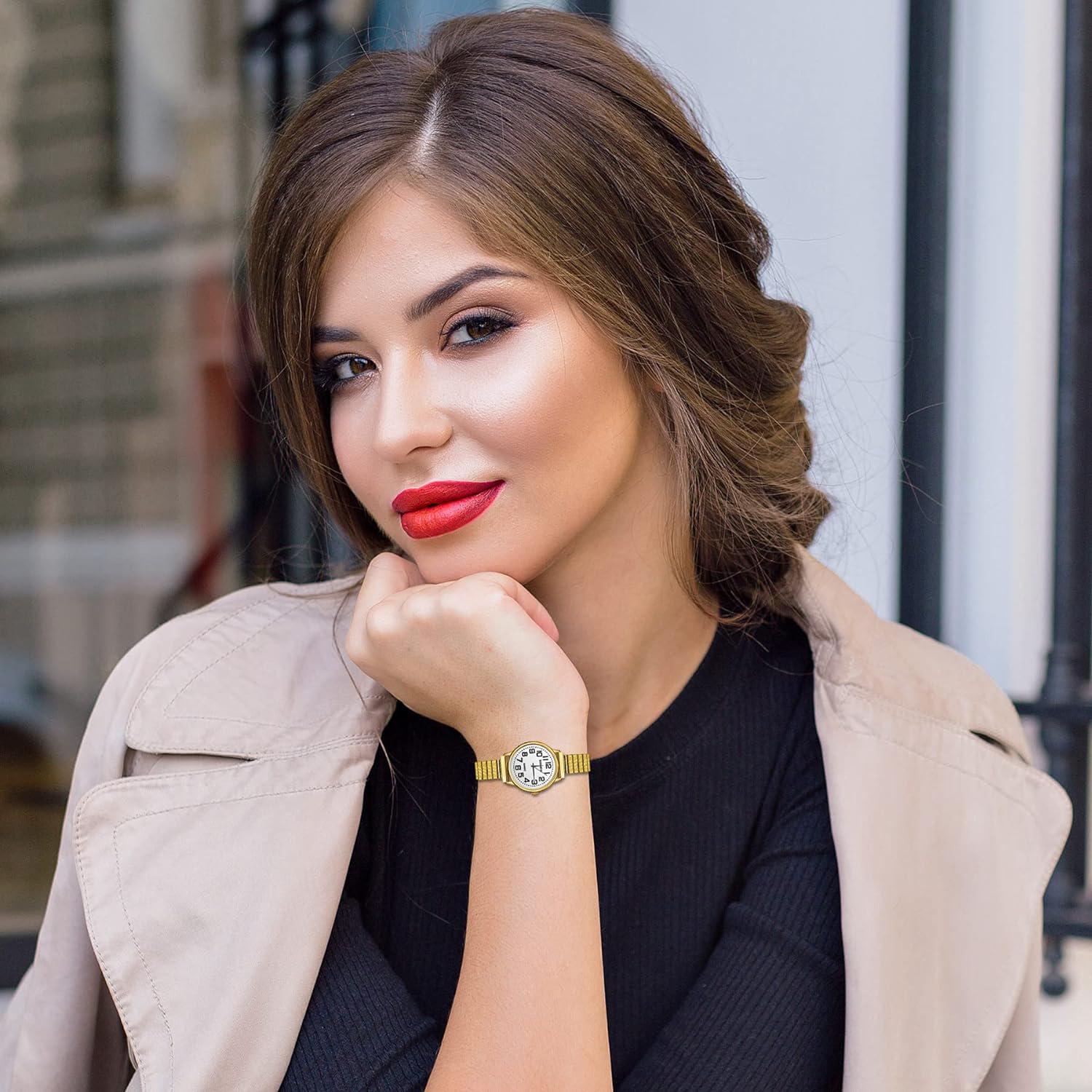 [Ibohevo Womens Large Face Watch: Women Gold Stretch Band White Dial Thin Watch Girls Eazy Reader …]