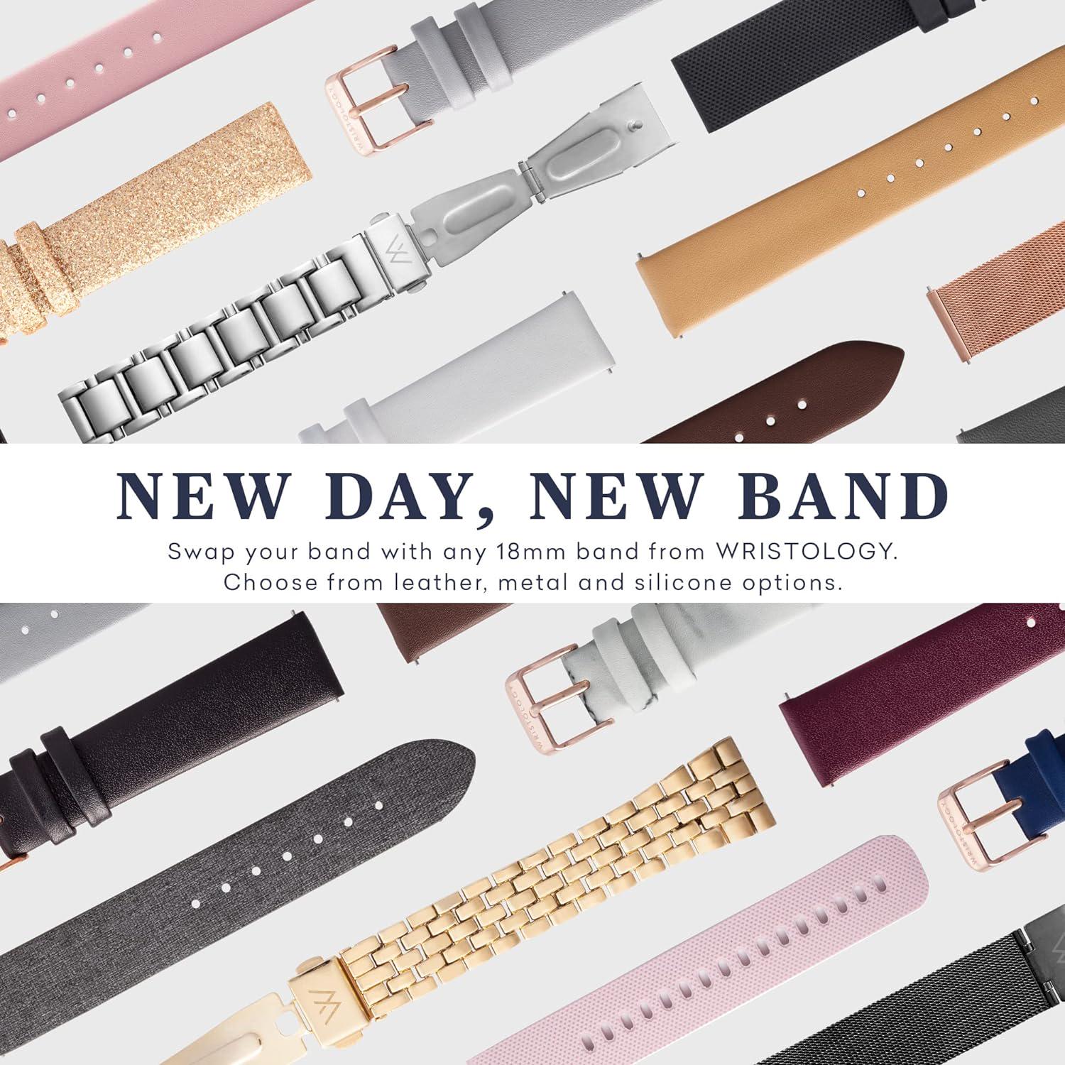Band 18mm Black Leather 18mm Silver Metal Mesh 18mm Gold Metal Mesh 18mm Grey Leather 18mm Rose Gold Metal Mesh 18mm Beige Leather